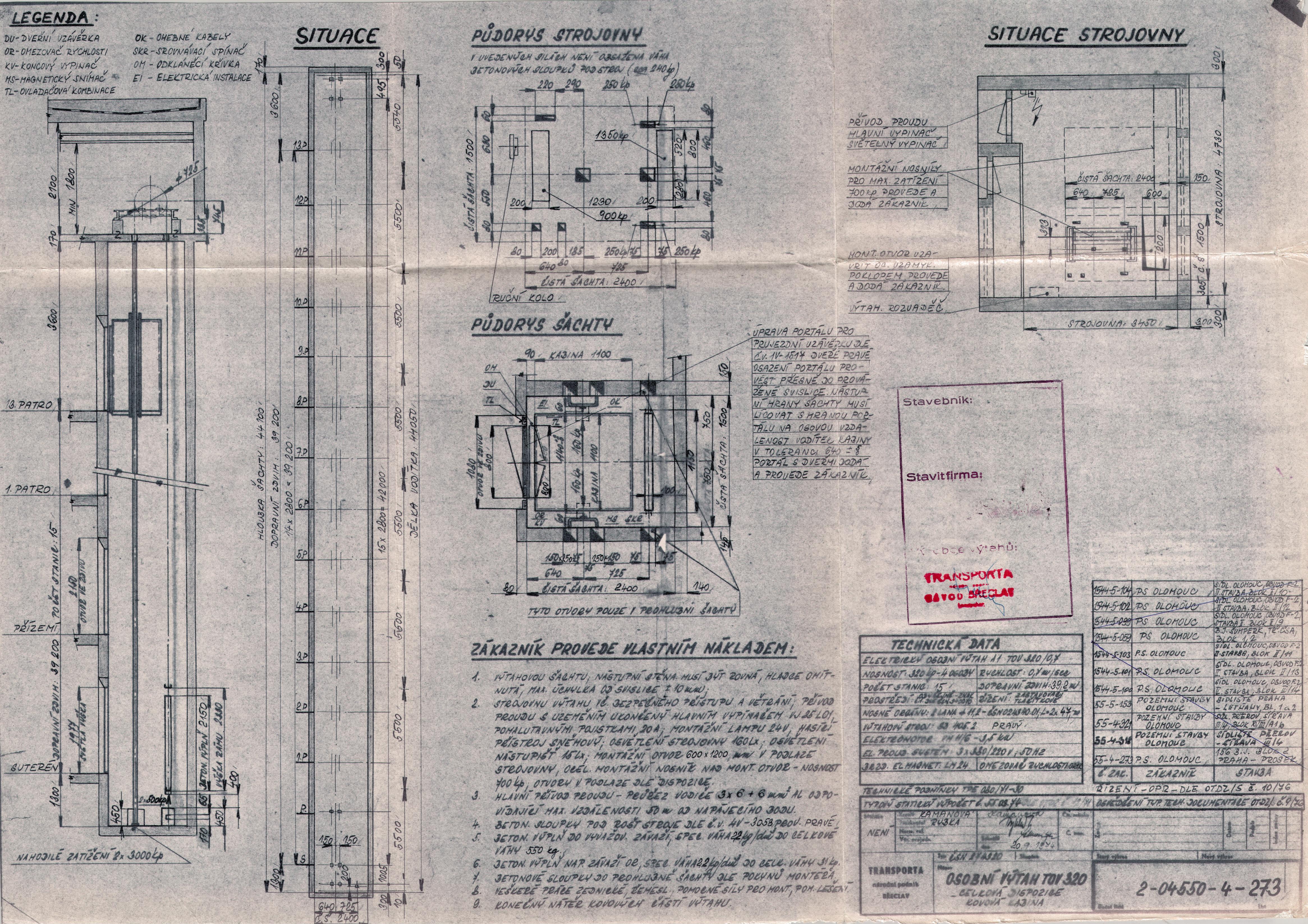 | Název: | Výkresová dokumentace k původnímu výtahu |